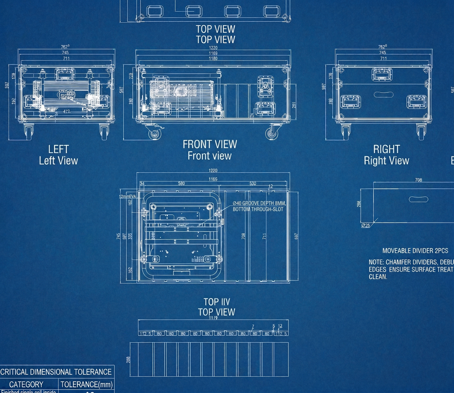 Si vous ne trouvez pas la taille dont vous avez besoin sur notre site web, nous la construirons de A à Z. Chaque dimension, séparateur et pièce de quincaillerie peut être adapté à vos spécifications exactes, que vous protégiez un seul instrument délicat ou que vous équipiez un ensemble de matériel de tournée. Nos ingénieurs internes examinent chaque demande et produisent des dessins CAO détaillés de votre étui avant que quoi que ce soit n'arrive à l'atelier, afin que vous sachiez exactement ce que vous obtenez avant d'approuver la fabrication. Pas de surprises, pas de compromis, juste un flight case fait pour vous.